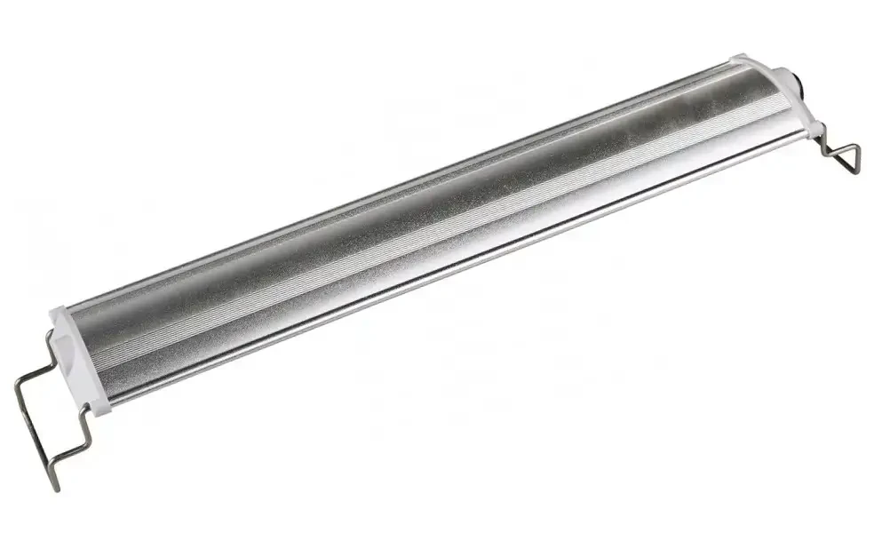 Корпус світильника виготовлений із міцного та легкого алюмінію, який захищає світильник і діоди від пошкоджень і перегрівання. Зовні виготовлений у сріблясто-сірому кольорі, яскраво світлого відтінку. Такий світильник прекрасно підійде до будь-якого дизайну акваріума, сріблястий колір вважається стильним і лаконічним рішенням у будь-якому інтер'єрі. А завдяки тому, що світильник має тонкий і досить вузький корпус, він не виділяється серед загального плану, не нагромаджуючи акваріум. Для зручності експлуатації бажано під'єднувати світильник до мережі за допомогою таймера для автоматичного керування освітленням.